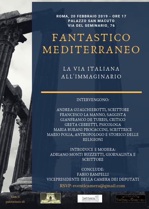 Italian Sword&Sorcery alla Camera dei Deputati Mercoledì 20, a Roma, alle ore 17,00 presso la Biblioteca della Camera dei Deputati, Palazzo San Macuto in Via Del Seminario, 76, si terra’ un convegno dal titolo:
