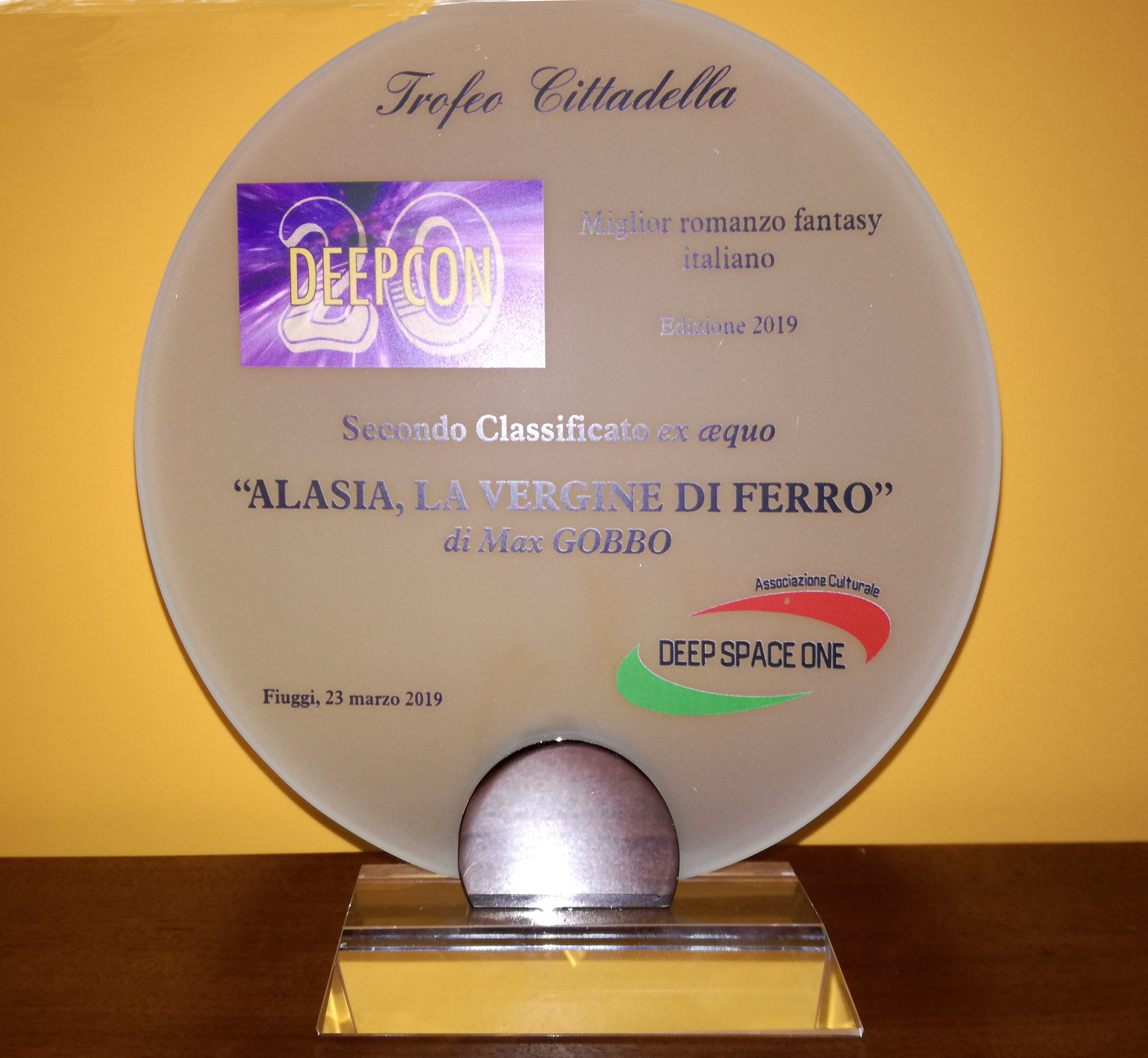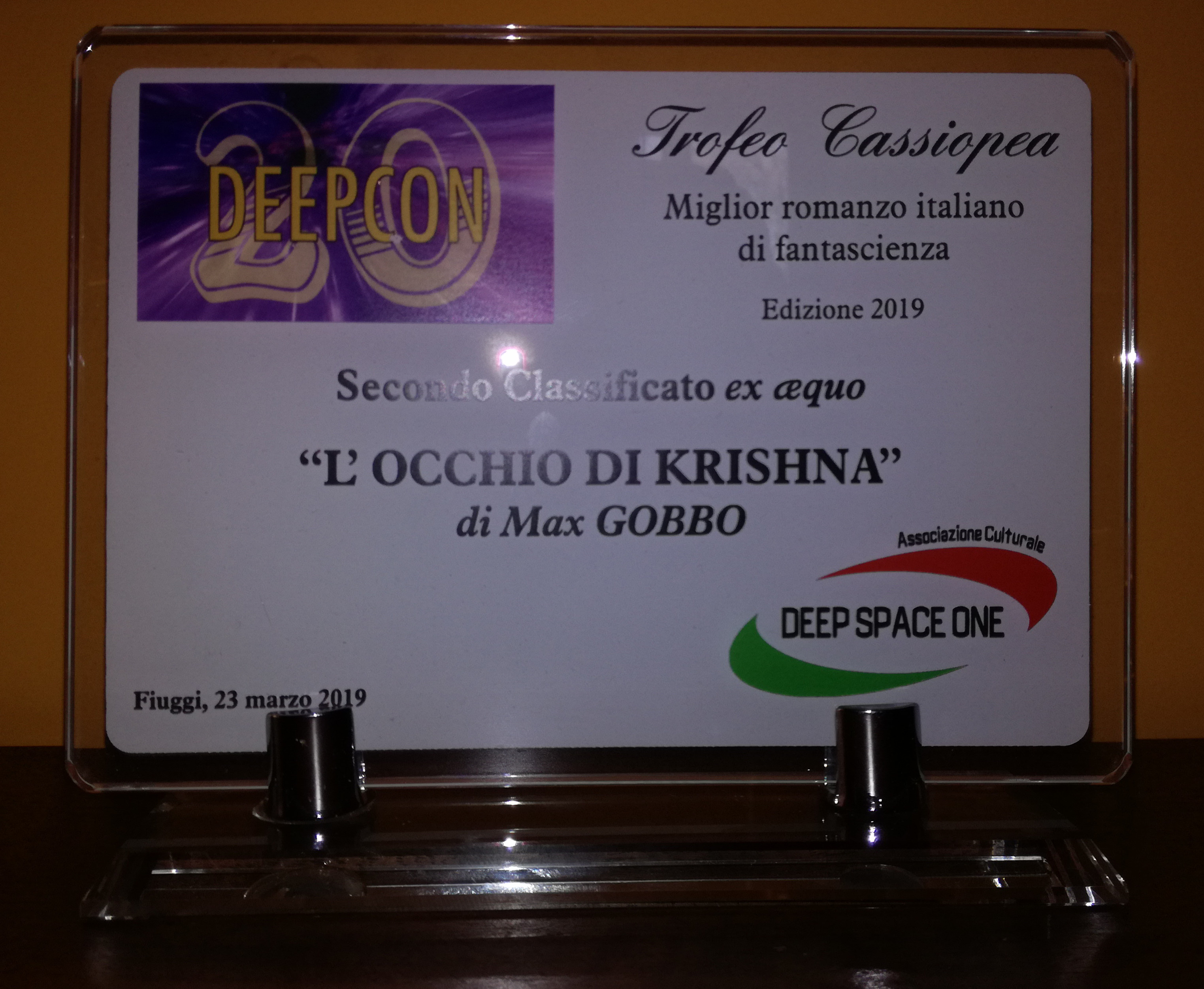 Colpo…Gobbo per Max Siamo lieti di comunicare che sabato 23 marzo nella serata di gala della Deepcon 20, la convention dedicata al fantastico, svoltasi a Fiuggi, il socio Max Gobbo è stato premiato come 2° classificato nel Trofeo Cassiopea, dedicato alla fantascienza italiana, con il romanzo “L’occhio di Krishna” (Bietti) ex aequo con il romanzo “2045 Lettere da un passato futuro” di Marko D’Abbruzzi. Inoltre, in seno alla stessa manifestazione, il nostro Max é stato anche premiato come 2° classificato nel Trofeo Cittadella, dedicato alla fantasy italiana, con il romanzo “Alasia, La Vergine di Ferro” (Watson) ex aequo con il romanzo “Alice nel labirinto” di Roberta De Tomi. In un sol colpo due riconoscimenti, con i migliori complimenti della WorldSF Italia.