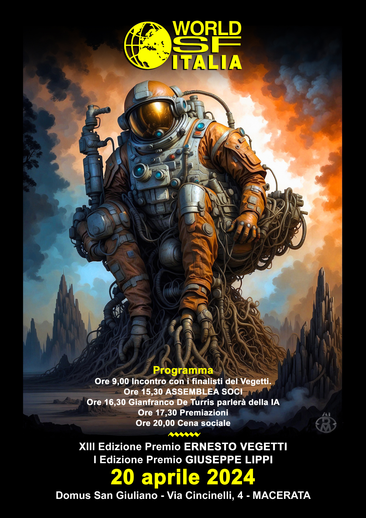 Eventi Associaz. World SF Italia 1 Giugno 2025A seguire la locandina realizzata dal socio e illustratore Alessandro Bani relativa alla manifestazione della World SF Italia che si è tenuta a Pesaro presso l' Hotel Alexander Museum Palace, viale Trieste n. 20, nel pomeriggio di domenica 1 Giugno, dalle ore 15,45 con lo svolgimento dell'Assemblea Gen. dei soci. Al termine, c'è stata la :